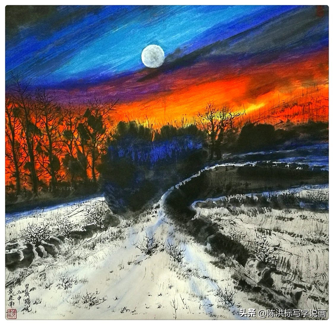 ▲黄建南中国画《雪夜曙光》。