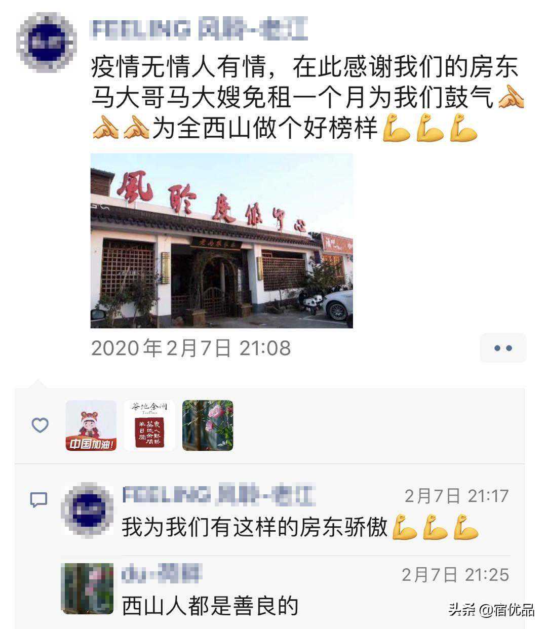 苏州西山某知名民宿业主发圈称:疫情无情人有情,再次感谢我们的房东马大哥马大姐免租一个月为我们鼓气,为全西山做个好榜样。