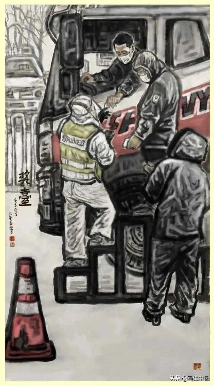 《拿画笔的抗疫战士》中国画蒋洪亮