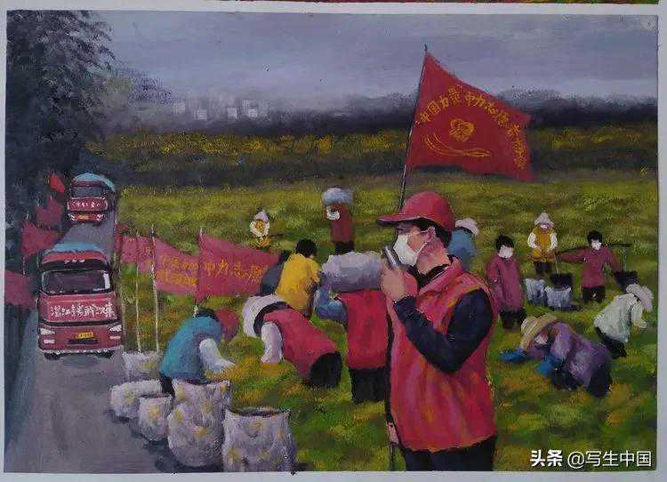 《抗击疫情,大爱无疆》国画四尺整张张海霞