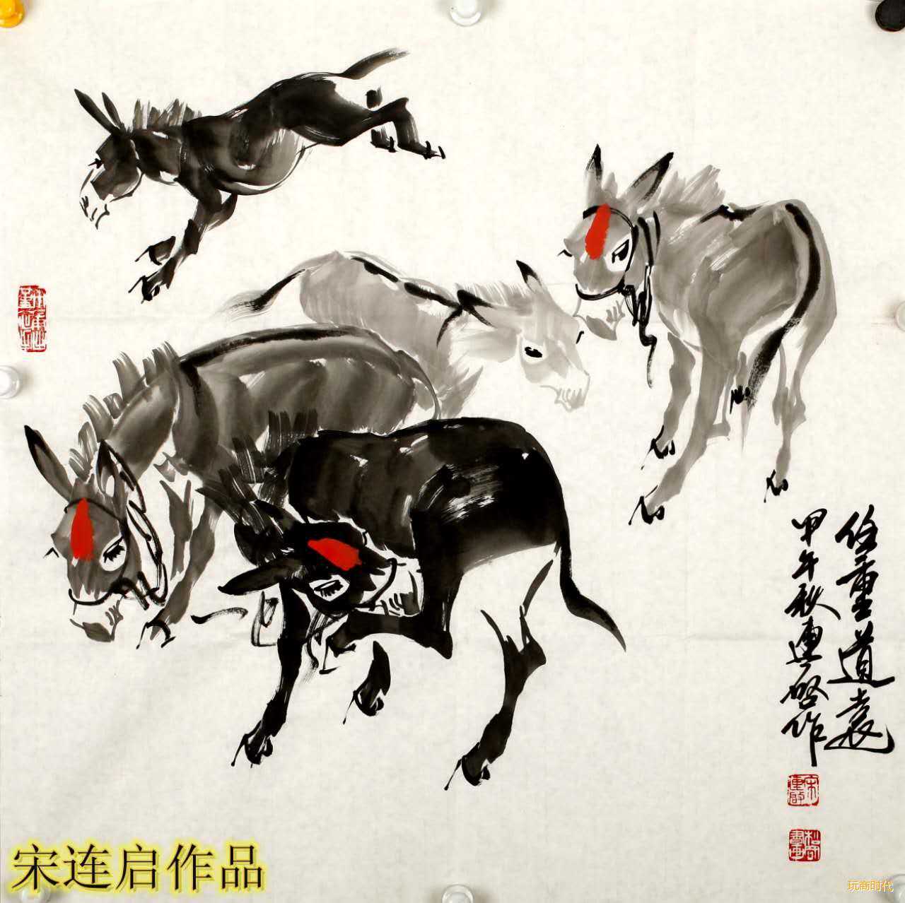 在中国画坛,能画精多种动物的不多,宋连启号称“驴马鸡”三绝,画驴才是头号绝技。