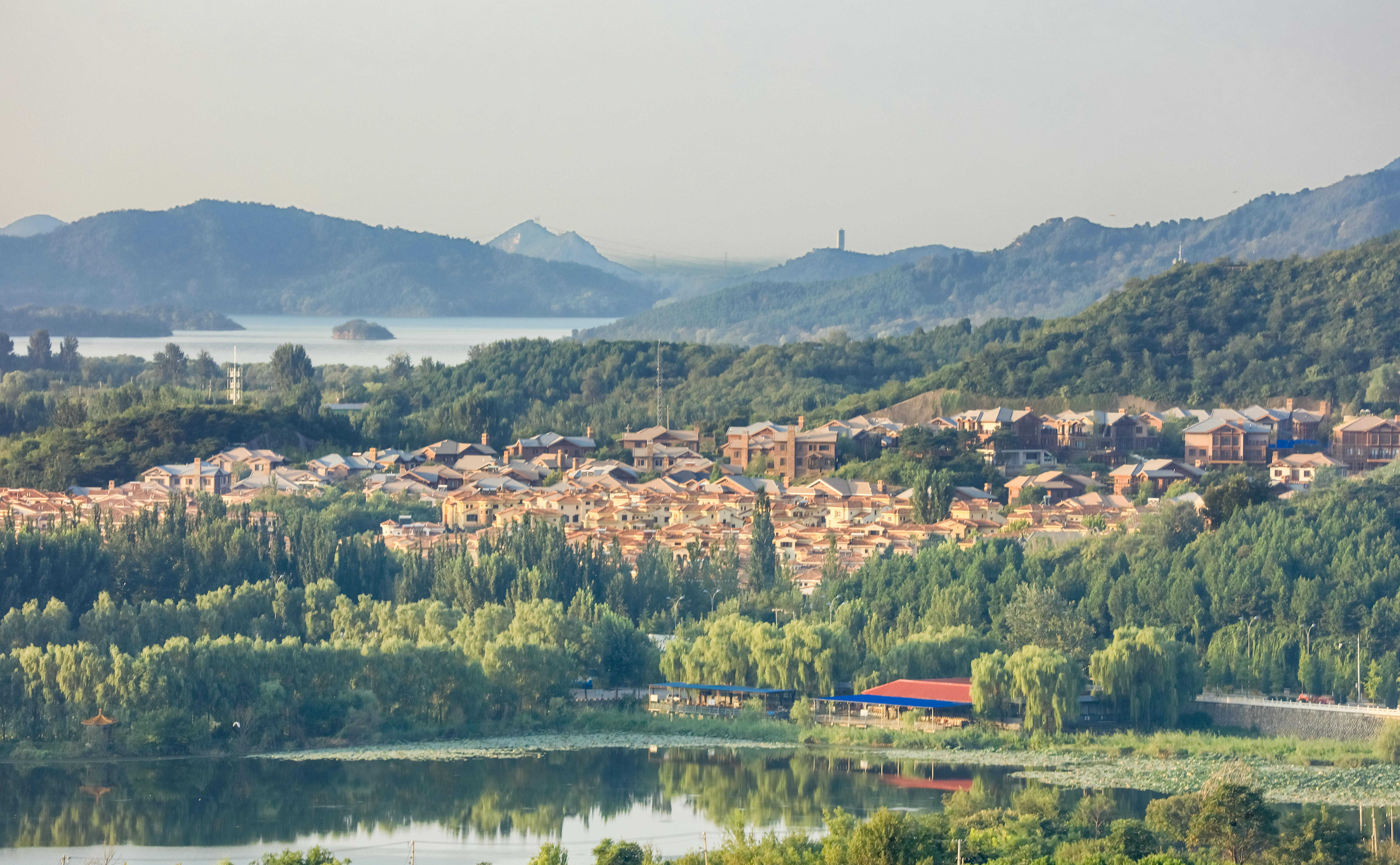 两湖夹半山,远处是怀柔水库,近处是红螺湖。