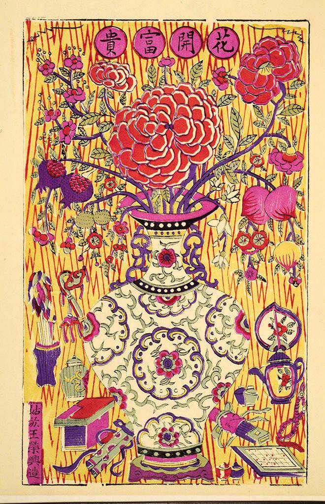 上世纪六十年代初,王祖德到苏北、安徽、浙江等地做田野调查。在农户家的猪圈中,发现了一个清代木板。反面已被刀砍出了一个凹槽,下面是雕工精美的《花开富贵》——偌大的桃花坞年画博物馆,仅存的一幅清代版画,居然靠着当切猪饲料的砧板这一身份才保存下来。