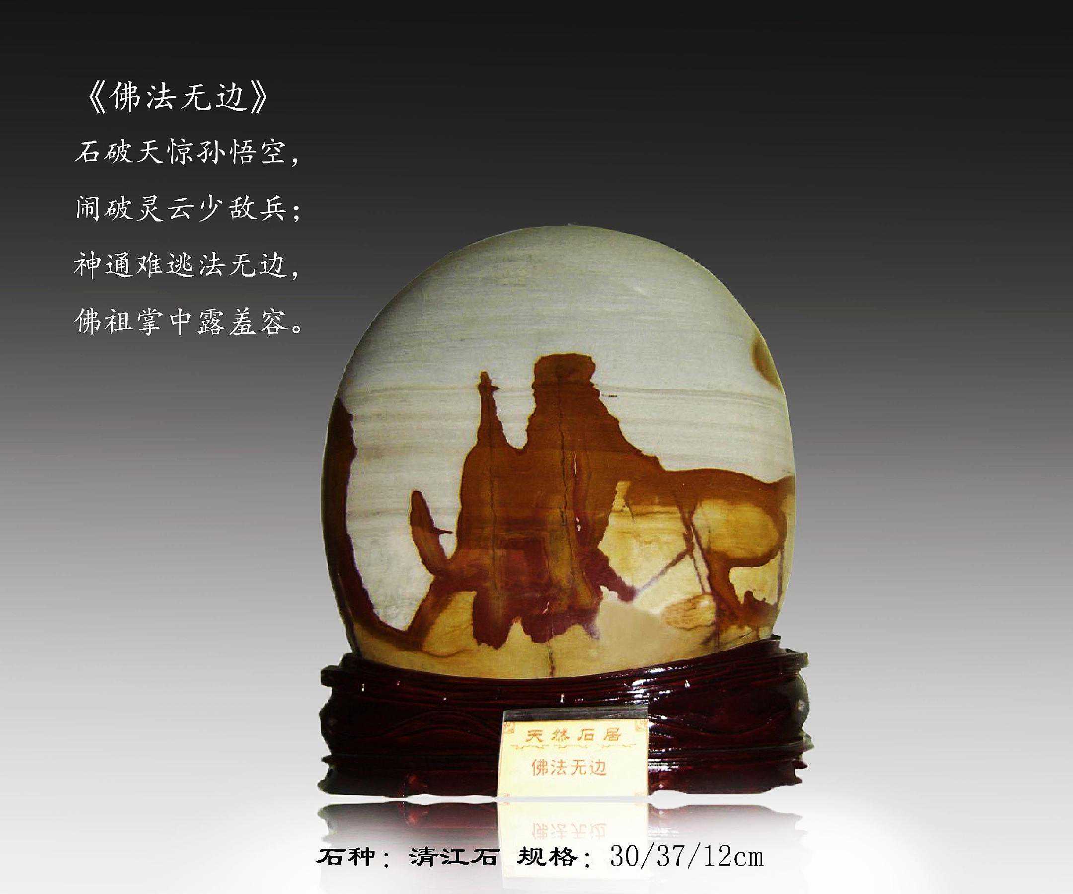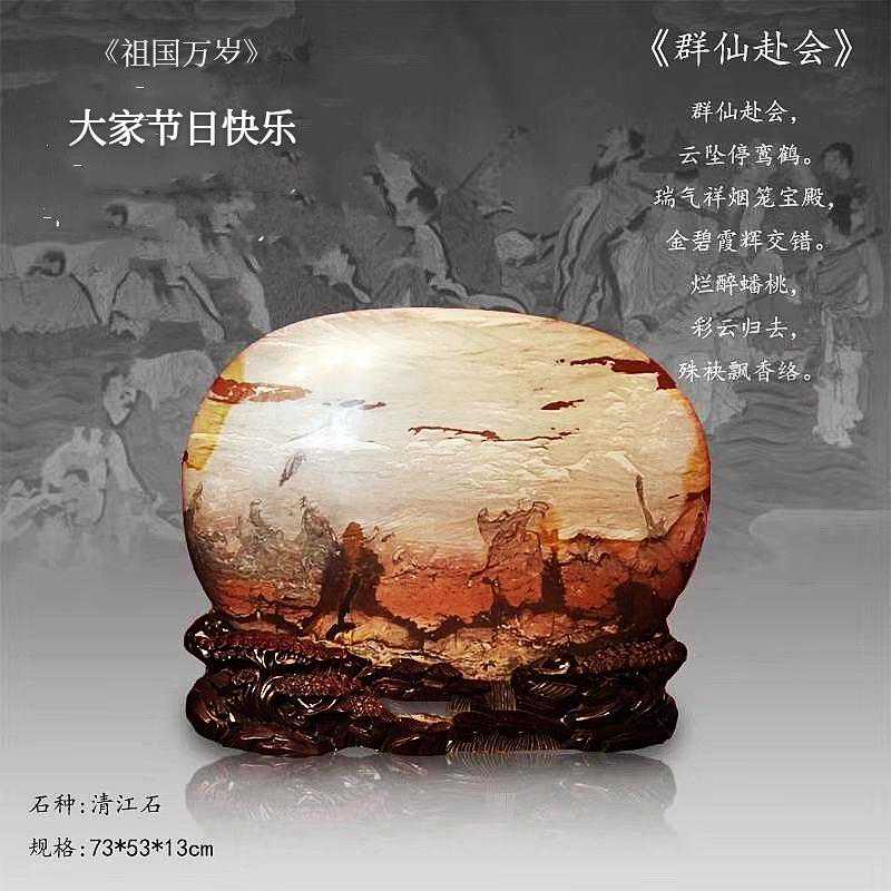 20年前,老刘又与奇石结缘,成为中石协创会时的初始会员,老刘收藏石头不计较石种,只要美,只要观赏主题自然天成、稀缺,形成难度大,能读出文化,品出故事,价高点也行,只要拿得动一定拿下,如果买不到手就会吃不香,睡不着。一次在洛阳石展上看到一方清江石,价高缺银子,就同卖方朋友协商,可否暂欠一部分,卖方欣然同意。石头拉回老家后,老刘立马带上早年收藏的纪念金币,急奔北京马甸市场转让还款。第二年还是在洛阳石展上,他又看上了一方大块清江画面石,后命名《群仙赴会》,因色彩、纹路都非常奇绝,寓意也好,可遇而不可求,但还是缺钱,没办法,老刘只好在石展上直接往美国打电话,让在美国斯坦福大学读研的儿子把他在学校贷的学费打10万过来,儿子说不买不行吗?老刘说全世界就此一方,我想买,错过了就再难遇上,钱以后可以再赚,同样的石头再找不来。儿子很孝顺立马给打了5万过来,老刘终于得偿所愿,满载而归。但后来老刘还是有点难受:为了自己的爱好不顾孩子的学习,我是不是有点太自私了。