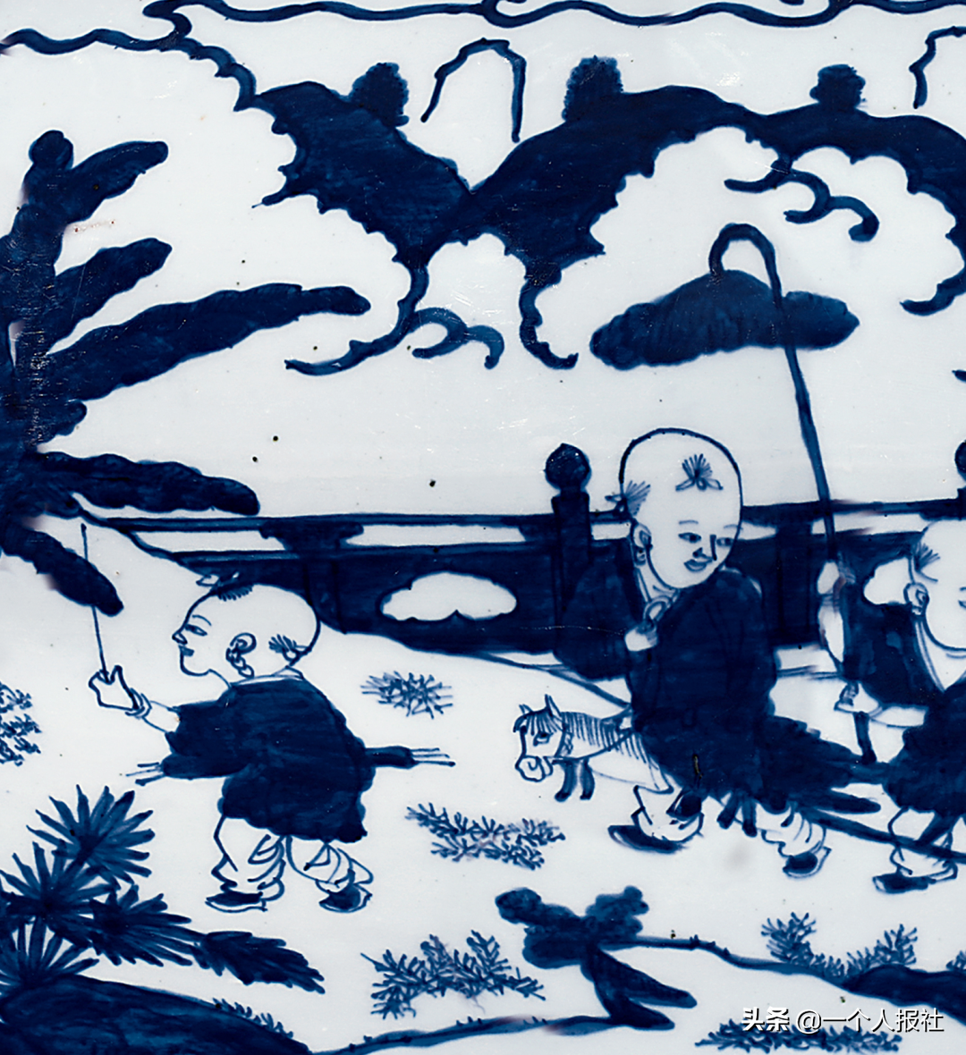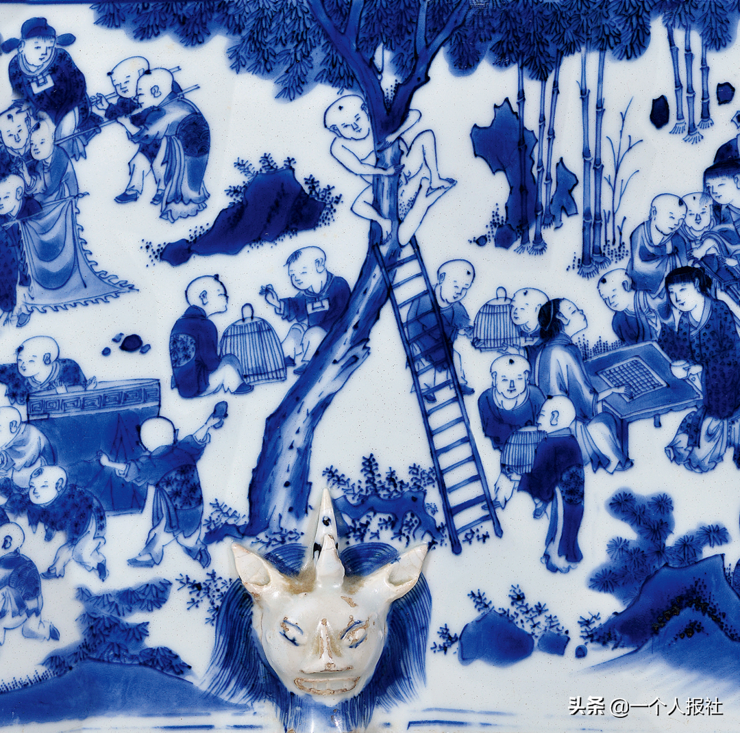 明崇祯青花百子图大笔海