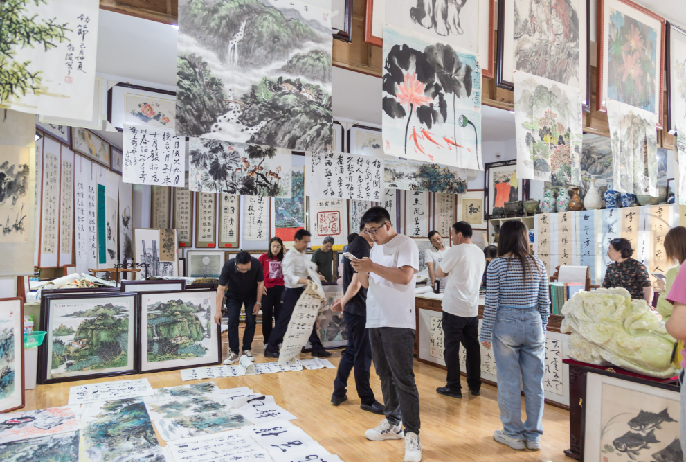 说到画廊,不能不提政府招待所二楼的“西部美术馆”和通渭宾馆三楼的“长安画廊”。“西部美术馆”陈列的多为省内外名家来通渭交流留下的墨宝,作品气象万千,风采各异,标价几百到千余元不等,其中不乏京津及各地名家之作。“长安画廊”则以经营古董字画居多,粗略浏览,有唐琏、范振绪的山水画作,也有刘尔析、裴建准的书法条幅。