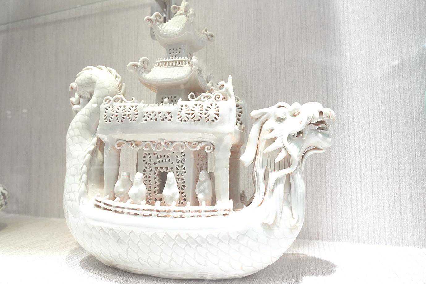 卵白釉龙舟。
