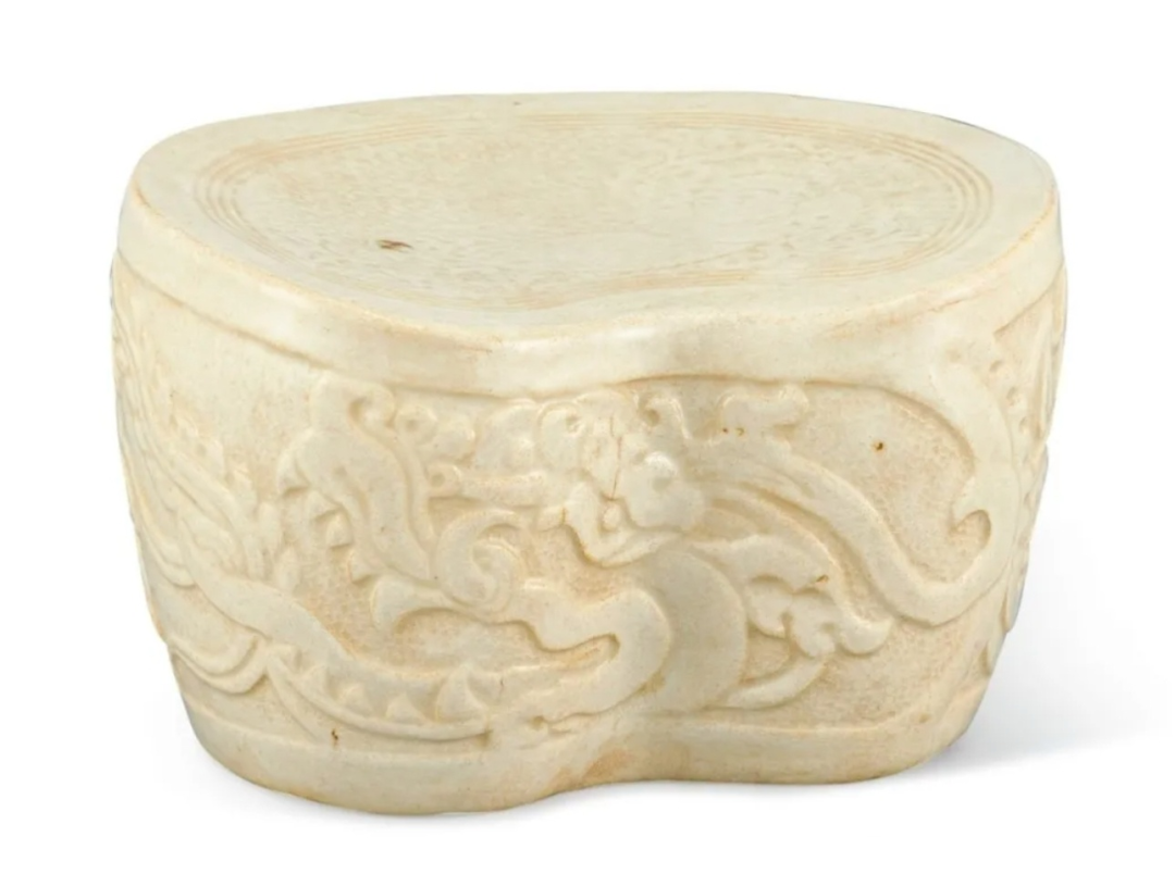 北宋青白釉刻婴戏龙纹枕
