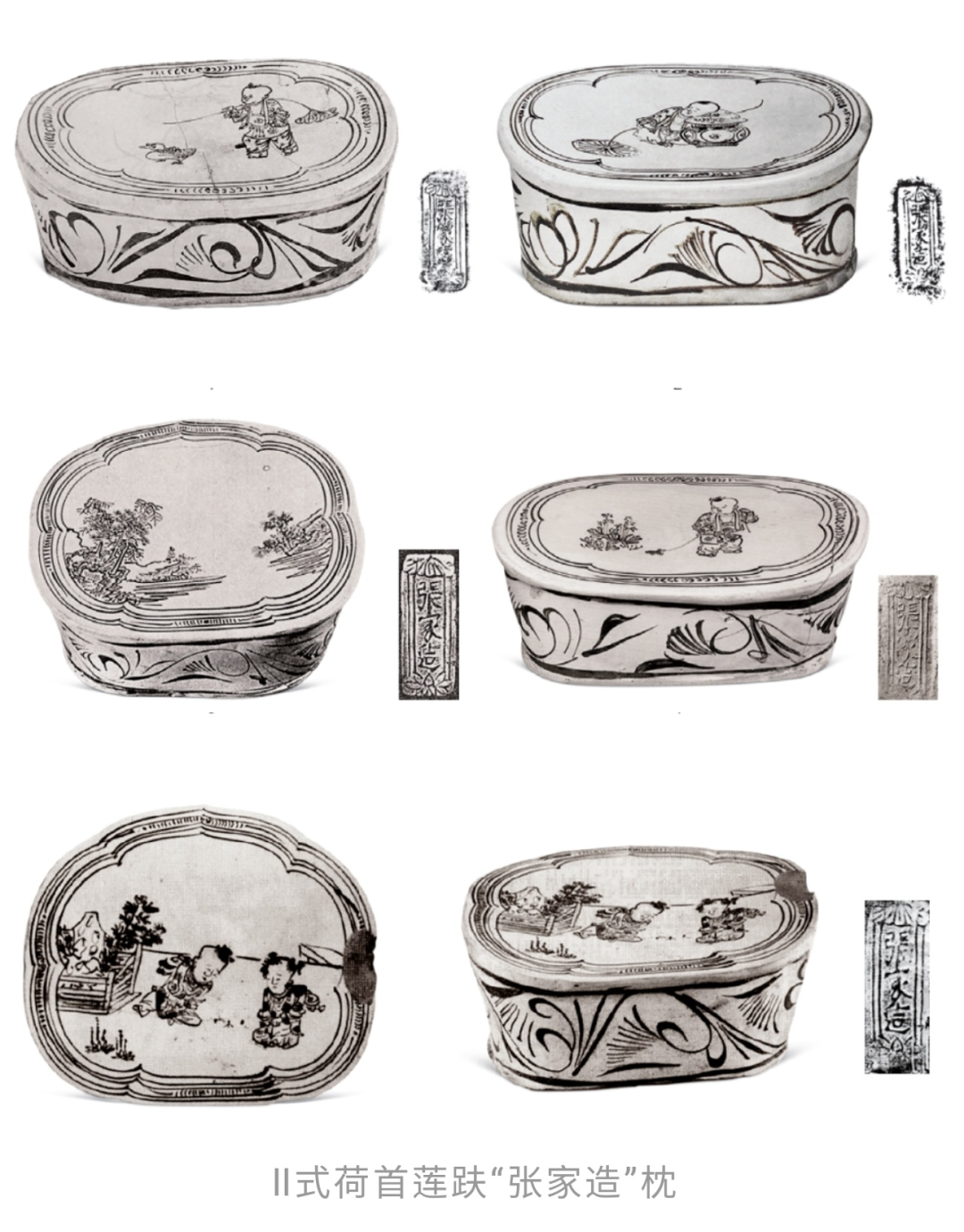 可见在使用该式戳记的作坊中,有位善在圆形枕面上绘婴戏图的画匠,使得该作坊的产品具有浓厚的世俗意趣。