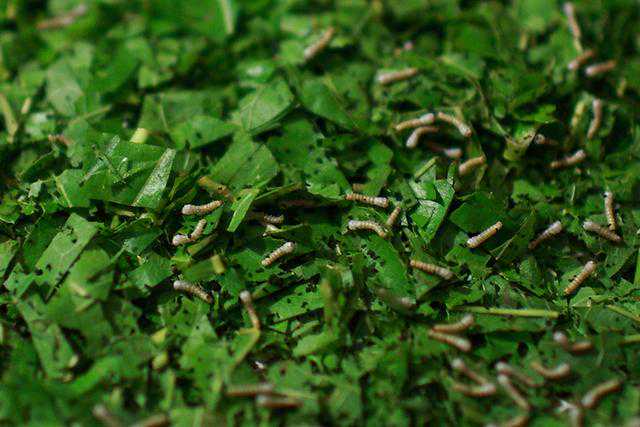 3.4龄良桑饱食:4龄是蚕体成长过渡到丝腺成长的转折时期,如果营养欠良,会影响到产量和质量。要求桑叶新鲜质好,选采顶叶下第7-15片叶喂用。