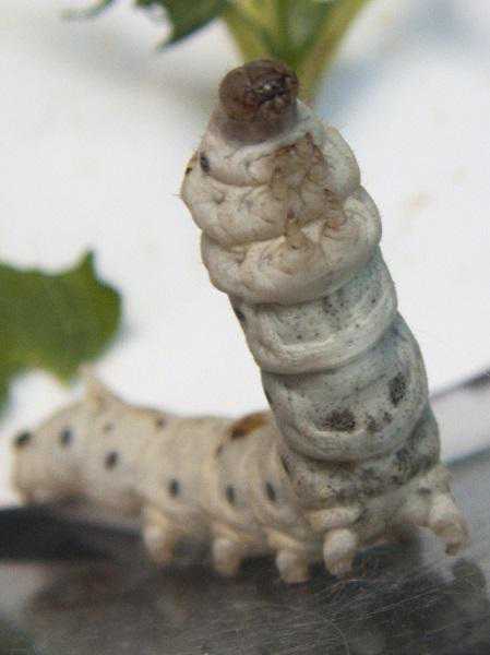 6.蚕体喷施灭蚕蝇乳剂:用灭蚕蝇乳剂300倍液或500倍液在4龄第2天和5龄第2、4、6天各体喷1次,防蝇蛆病。