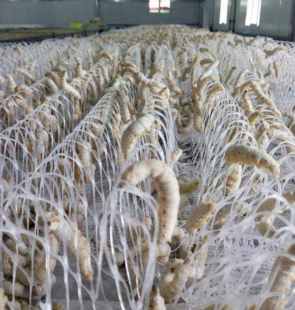 2.上簇密度:每平方米竹花簇上熟蚕700-800头,方格簇上156头,塑料折簇每张上200头。