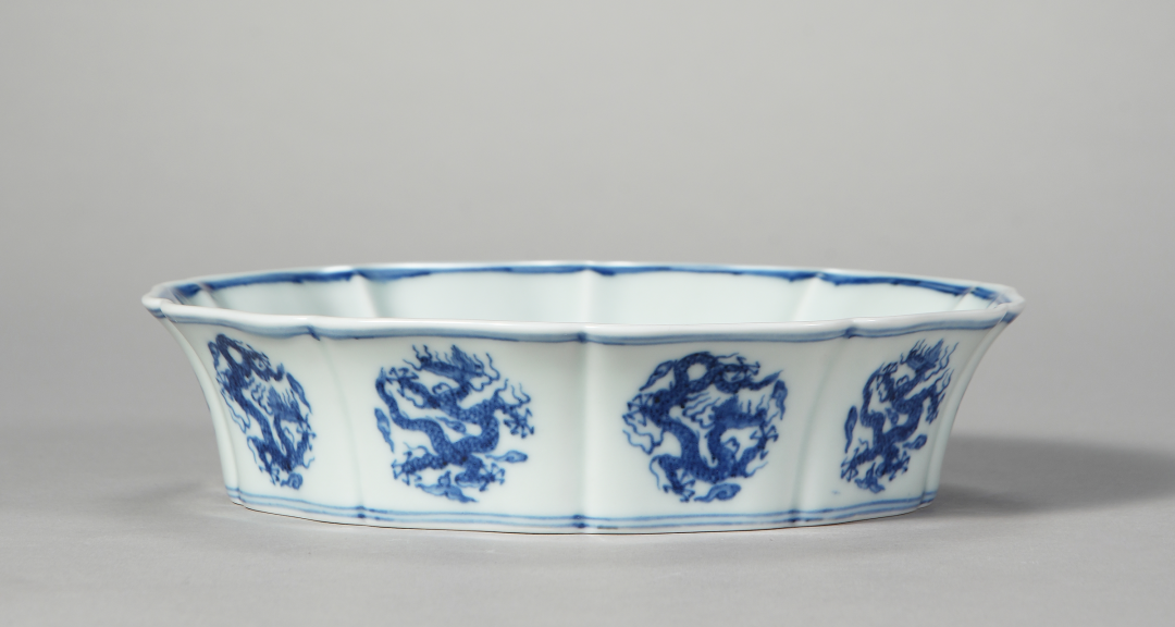 御窑元华堂仿宣德青花葵口龙纹洗