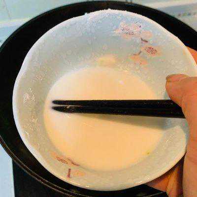 7、再一点水淀粉,倒入锅中,继续翻炒片刻(一点点淀粉就好,稀点的,我这里淀粉不小心倒多了,水加少了,有点稠)