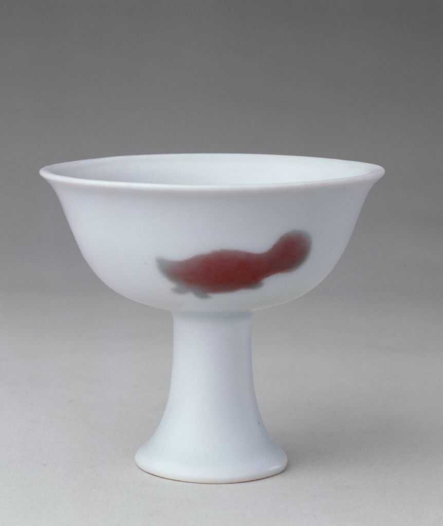 釉里红三鱼纹高足碗