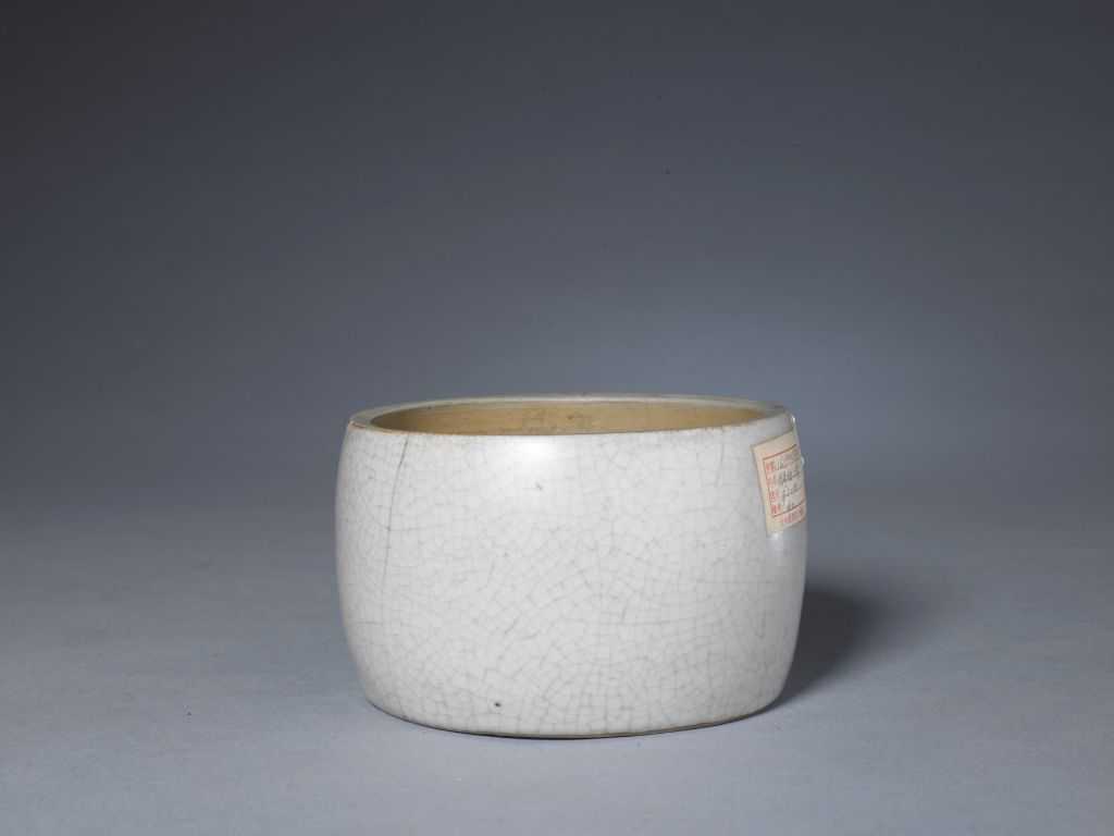 明代仿哥窑瓷器的传世品迄今所见最早为宣德时景德镇官窑的制品,造型有菊瓣碗、鸡心碗、菊瓣盘、折沿盘、撇口盘等,多署有青花宣德年款。这些器物的釉面光洁度偏低,有油腻感,与宋代哥窑器的釉面相似,但也有橘皮纹这一宣德官窑器的典型特征。其釉色有青灰、月白等,开片的纹路微微闪黑、闪红,没有宋哥釉器“金丝铁线”和“紫口铁足”的效果。