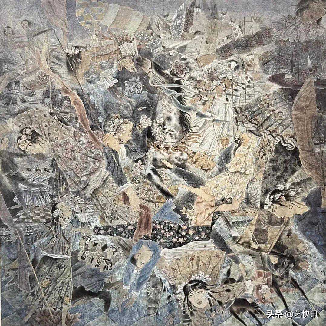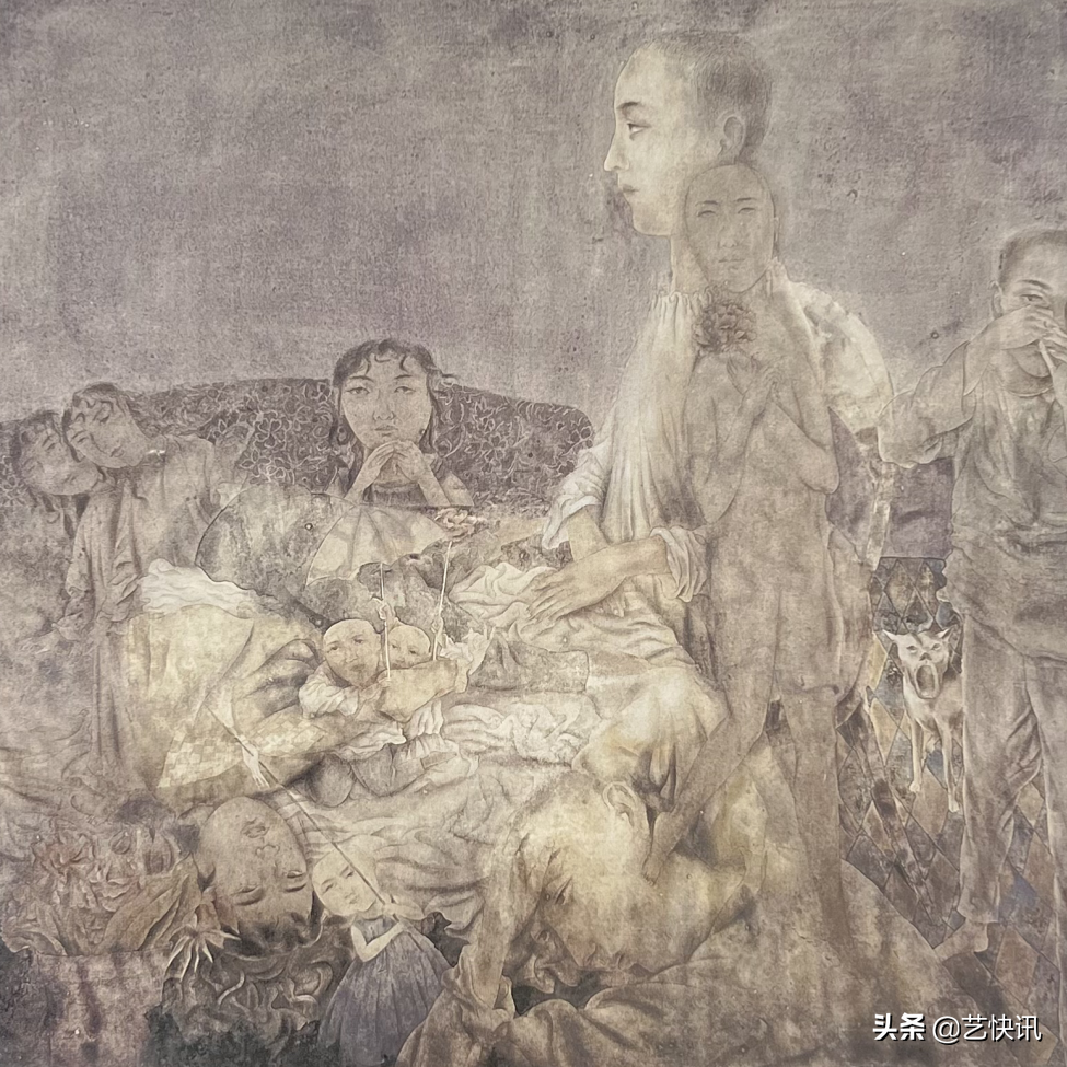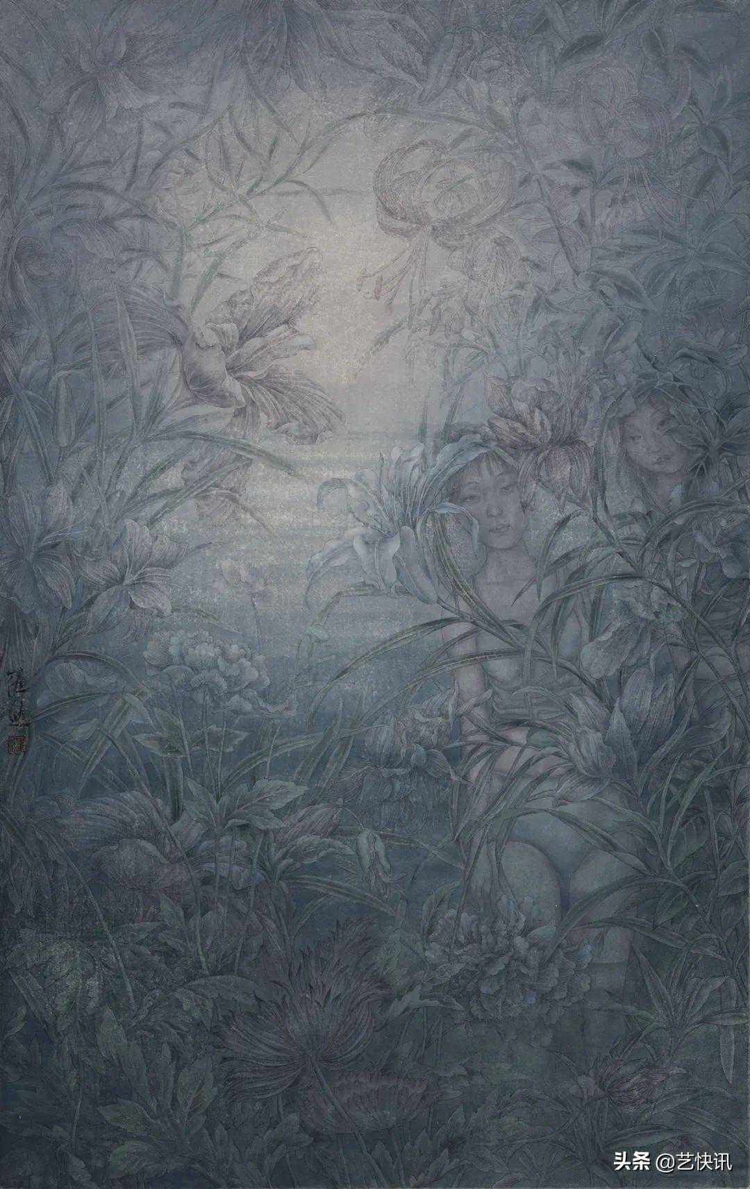 在《欢乐今宵》中遨游天际的祥云瑞鸟、奇花珍禽与优雅静穆的少女、缓步行进的仪仗队伍、纵横驰骋的戏剧人物共同营造着一种富于历史底蕴和东方格调的“欢乐”。由于在人物形象、色调敷染和空间节奏处理上直接吸收了六朝《洛神赋图卷》和佛教经变图的象征手法和图式,更增加了画面神话般的叙事特征,它反映了人的欢乐本性在一种历史和美学沉思中所获得的那种超越性自由,在历史隐喻中寻找到与我们生存现实相关的视觉意义。