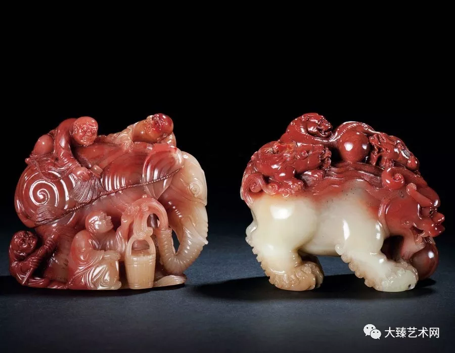 《寿山芙蓉石—太平有象、时来运转摆件》