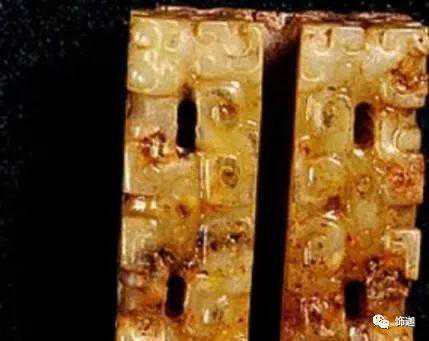 下面这块玉器可见底下一层受地表水沁变色。