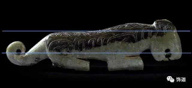 下面这块玉先形成了一条水沁线,以后尾部下沉,所以尾部和头部等高线发生变化。