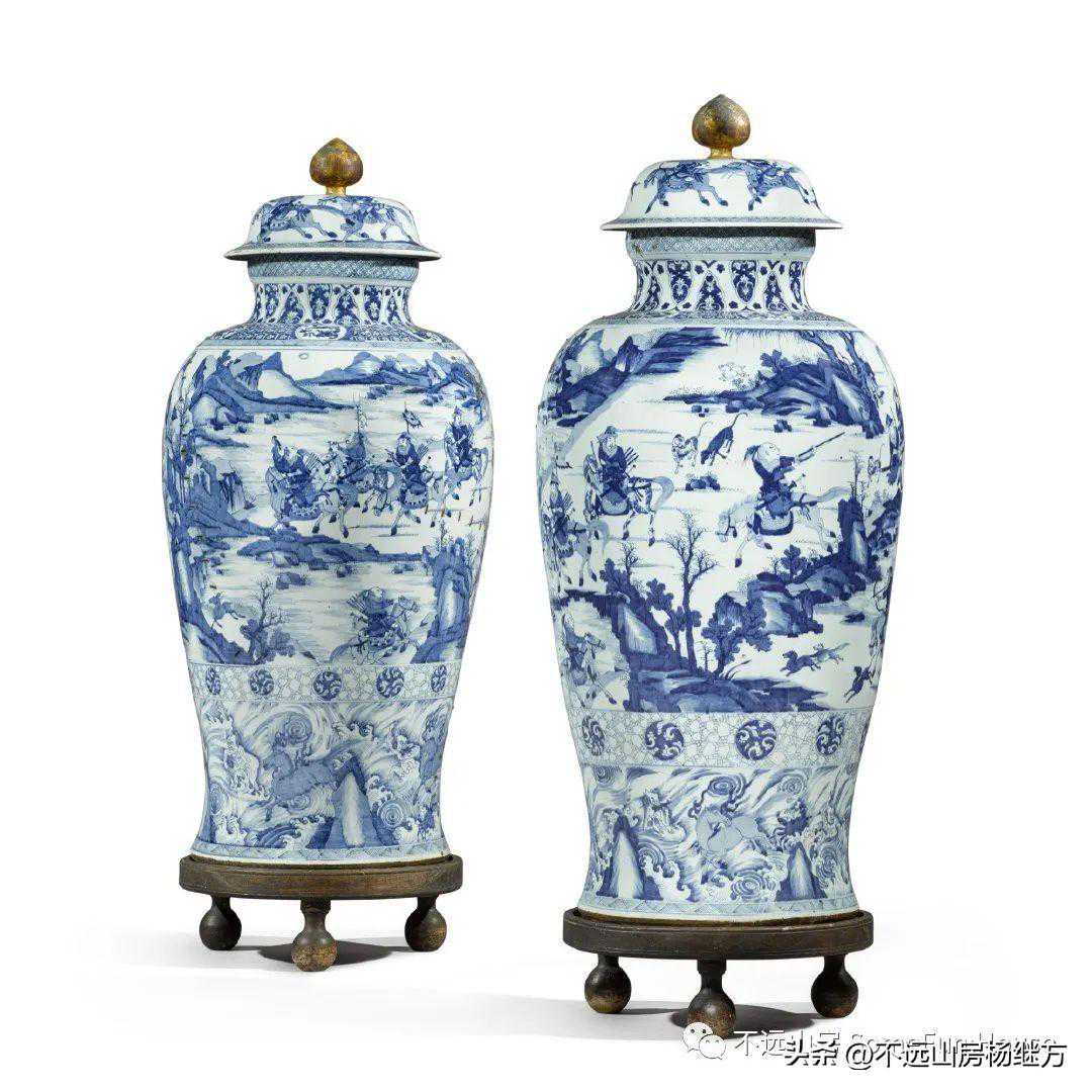 伦敦苏富比拍賣2021年5月12日中国艺术品清康熙青花通景巡狩圖大蓋罐一對成交价119,700英镑