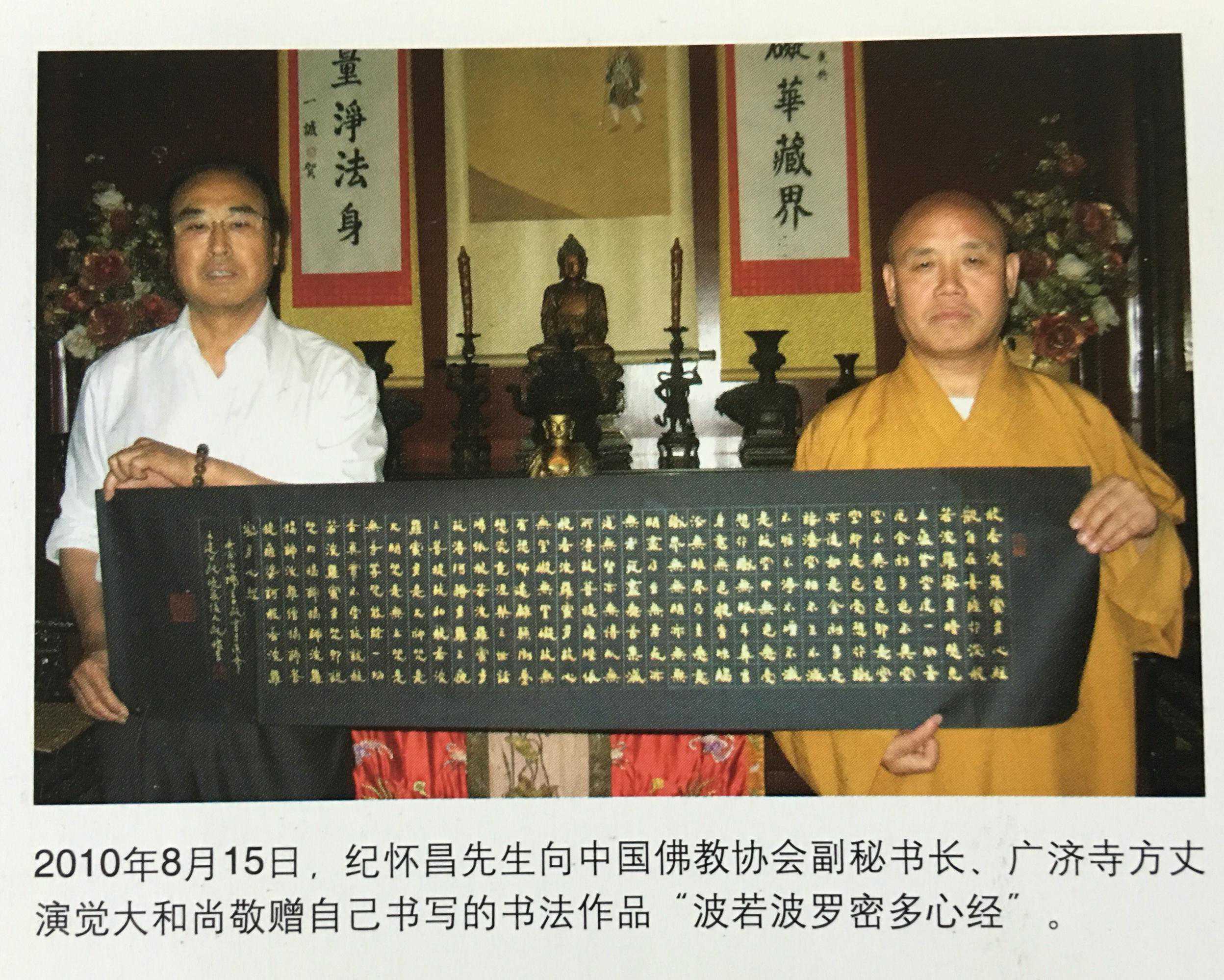 今年6月,一幅4平尺书法作品,保利国际拍卖公司春拍,又拍出10万元人民币。纪怀昌先生是著名书画鉴赏家、易学、禅学学者、诗人,著作撰写出版较多,先后有《当代名家书法赏析》、《中国书画鉴赏与收藏》、《中国传统建筑与住宅风水的现代用》、《纪怀昌禅诗精选》、《难忘岁月》、《纪怀昌书法艺术》等20余部著作出版。为弘扬中华民族传统文化,2013年11月,文化部文化遗产保护中心特批准成立"纪怀昌书法艺术传承工作室"为北大、清华、人大等大学讲授易学、禅学和书画艺术,深受好评。