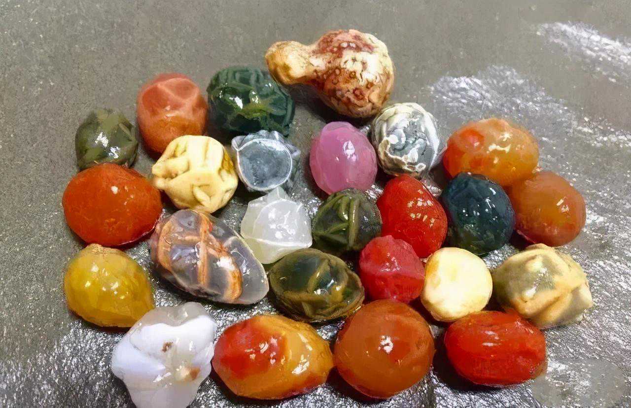 说起来,大多数人见得最多的应该是阿拉善玛瑙的珠串,晶莹通透,有着各样的颜色,像极了糖果。