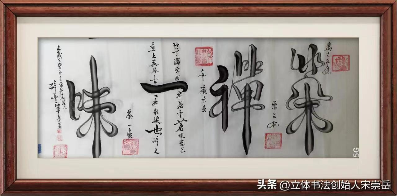 立体书法的简易性在于笔含水墨两层的原理,奇绝的结果却是执笔写万笔,层次总分明的实践能力。也就是说,就算是人们理解了立体书法的简单原理,却很难从实践层面上达到立体书写的复杂奇观。所以从文化的角度来讲,他的立体书法是太极之理的简易,却又是太极之行的深刻!众人皆知浓淡法,却唯有先生能书立体风!这就是书法大家知易而行难的卓越造诣。