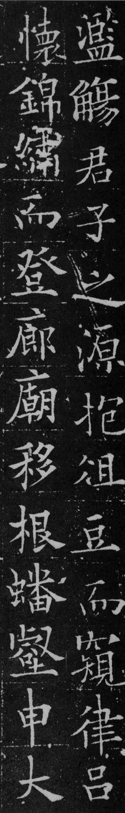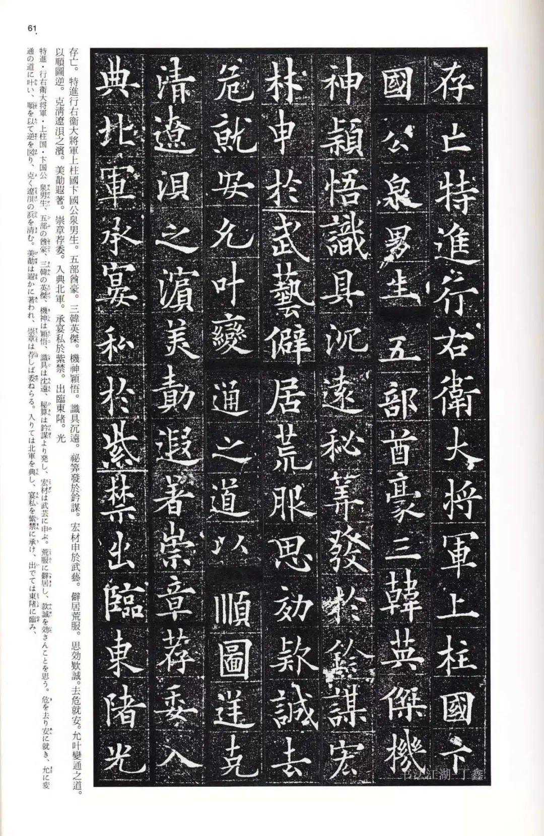 了解完用笔,我们再来看看结体。从这篇楷书《泉男生墓志》可以看出,欧阳通的结体同样是大量吸收了欧阳询的精髓,结体纵向挺拔,紧凑有力,虽然在严谨性上比不过欧阳询,但是却多了几分潇洒和灵动。