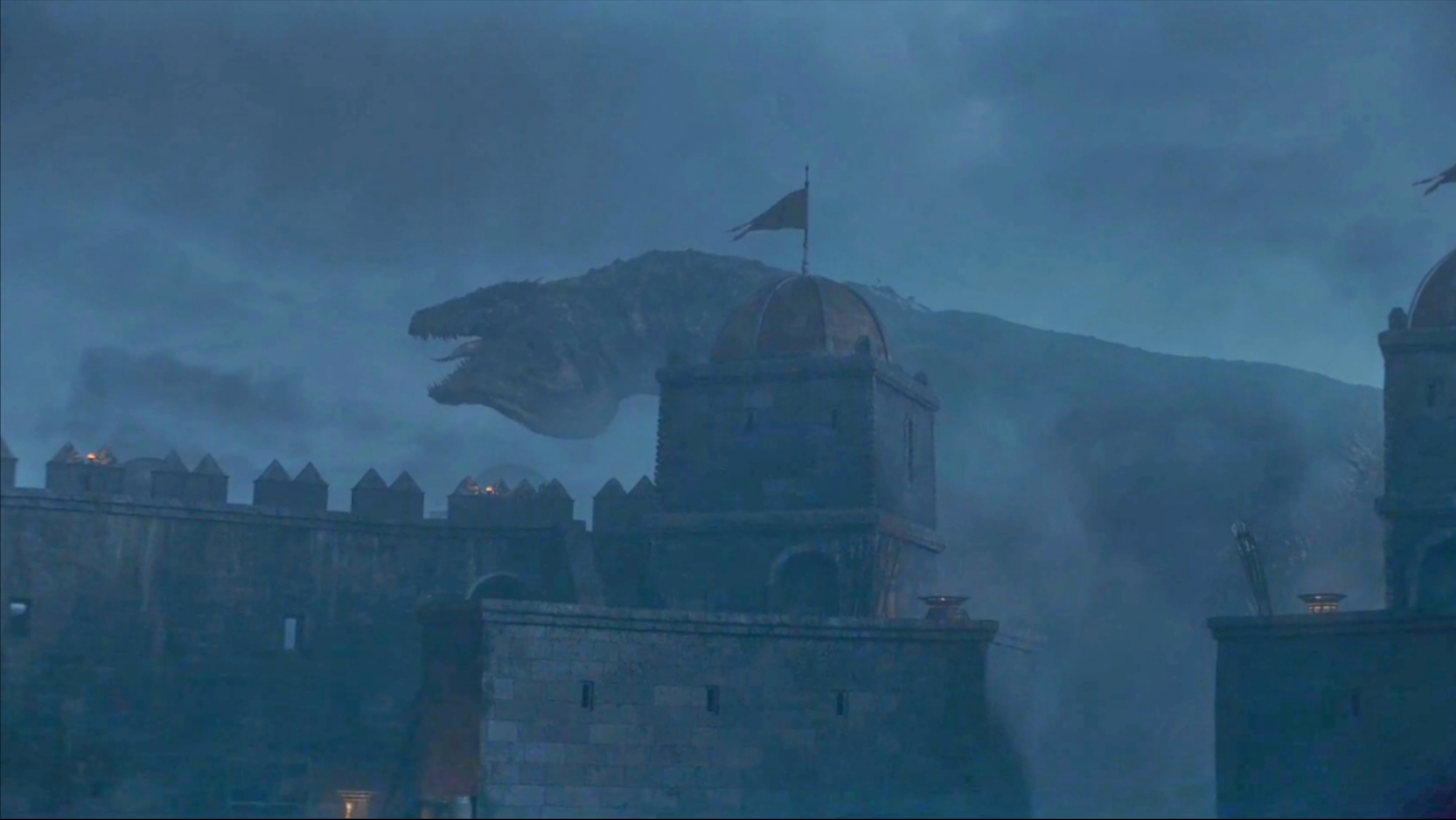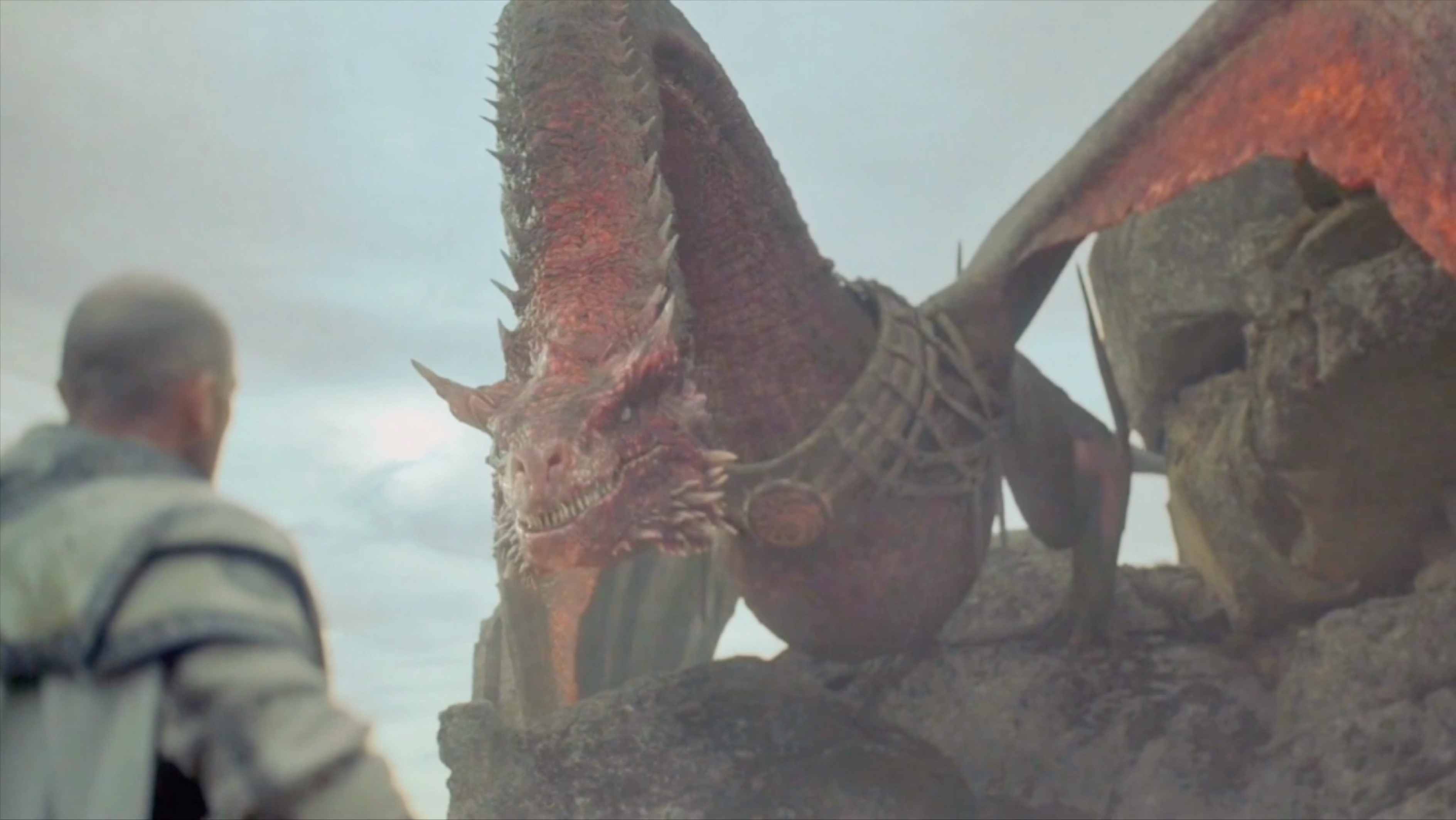 从几个例子我们都可以明显看到,比如在城墙上,戴蒙王子拔剑出来之时,克拉克就已经感受到了那种紧张的氛围。戴蒙根本没有说话,这时已经能够远远听到科拉克休的声音,紧接着就来了一声极具压迫感的咆哮,令对手阵阵发寒。对比于其他的龙,科拉克休更加喜欢先发出一些声音来表达自身的情绪,当你听到声音的时候,危险已经来临了。第2个场景是戴蒙王子与人谈判之时,让对方要效忠雷尼拉女王,话一说出来科拉克休斯会已经听懂了,在对方没有答应之前爬过来开始发出声音震慑,所以它俩的配合程度,那是相当默契的,根本不需要说话,好像相互之间能够实现心灵感应,这就如原著当中所说,龙能够感受到主人的危险一样。