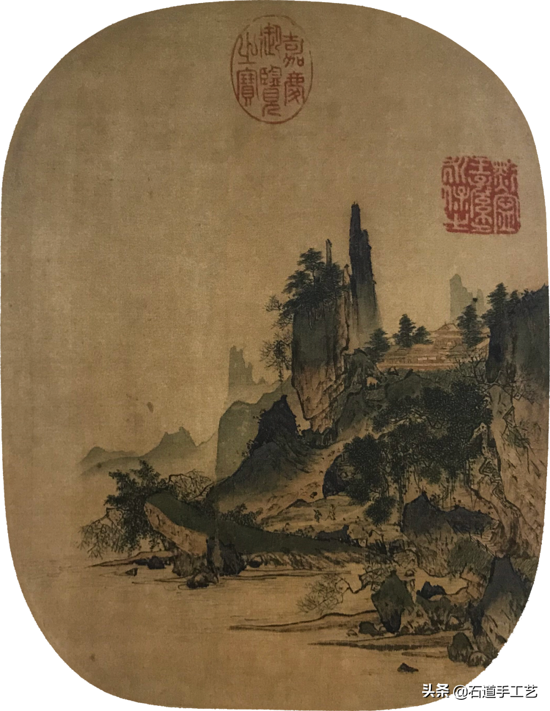 李唐(1049-1130),河阳人。字晞古。山水初法唐代李思训,其后变化自成一格。这幅气势雄浑,令人神惊目眩,为李唐七十六岁时所画。是传世李画中构图、笔墨、设色均极精之品。