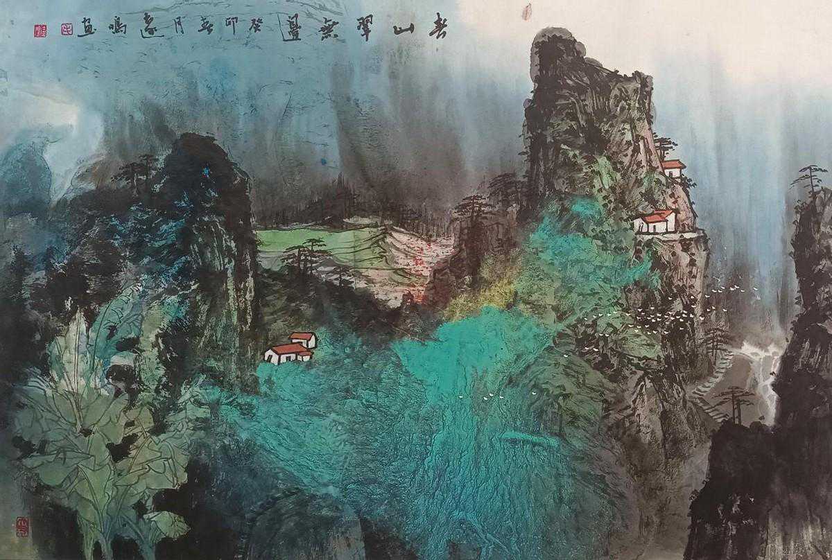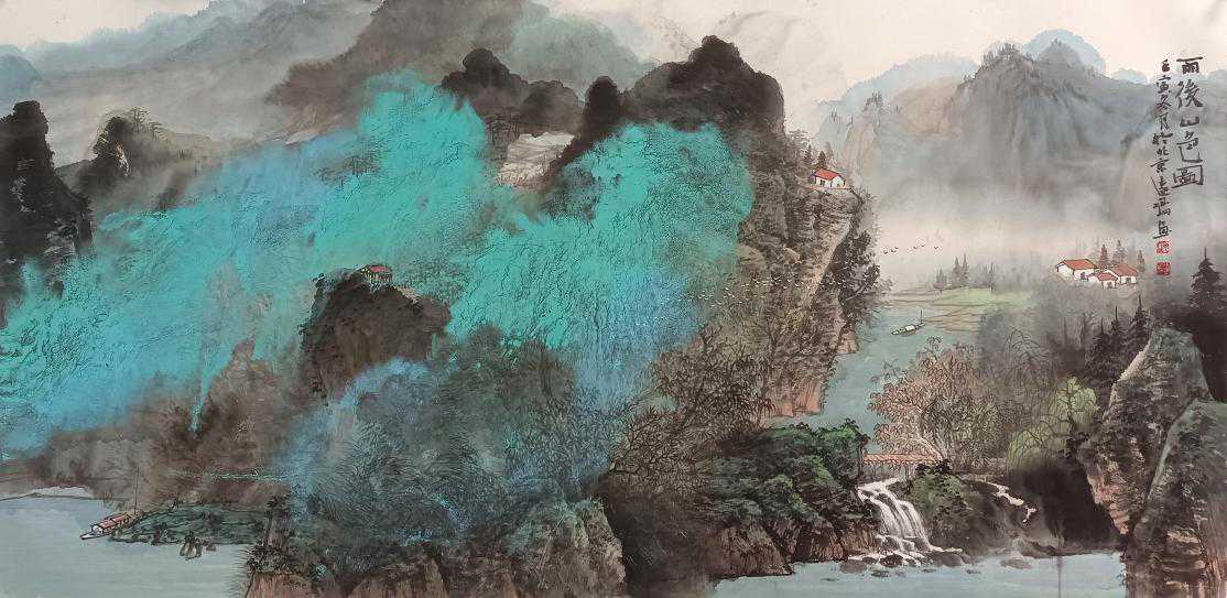 毛氏泼彩重彩山水创始人毛远鸣的作品《雨后山色》被比利时驻华大使馆收藏