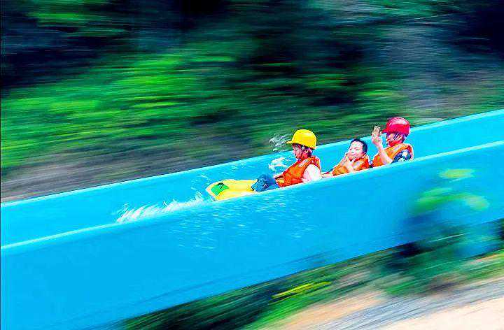 青山绿水之间,远远可见一条“神龙”蜿蜒盘旋。全长2723.08米,这是吉尼斯世界纪录认证的“世界最长山体水滑道”!从海拔几百米高的山顶上,顺着滑道,绕着悬空的山体一周,以二三十公里的时速俯冲到山脚,那刺激……光是看见这些字眼,都能感觉后背一股凉意,但还是抑制不住期待的心啊!