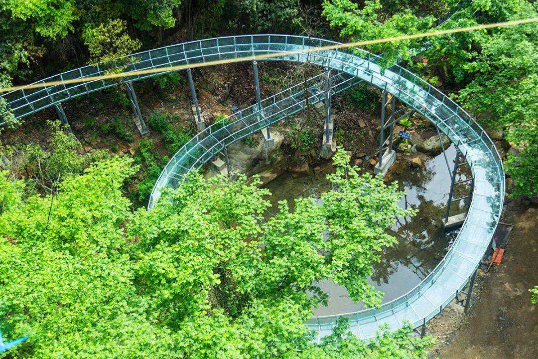 网红玻璃漂流惊现龙潭湾森林公园!承包了整片山林的霸气,仅仅空中玻璃漂流河道长度就足足有1千多米。乘坐着漂流艇沿山野而下,极具挑战性的百米落差、弯多险急的S型滑道设计、中途令人“猝不及防”的水枪袭击……时刻让你的肾上腺素喷发,体验心跳呼之欲出的快感。