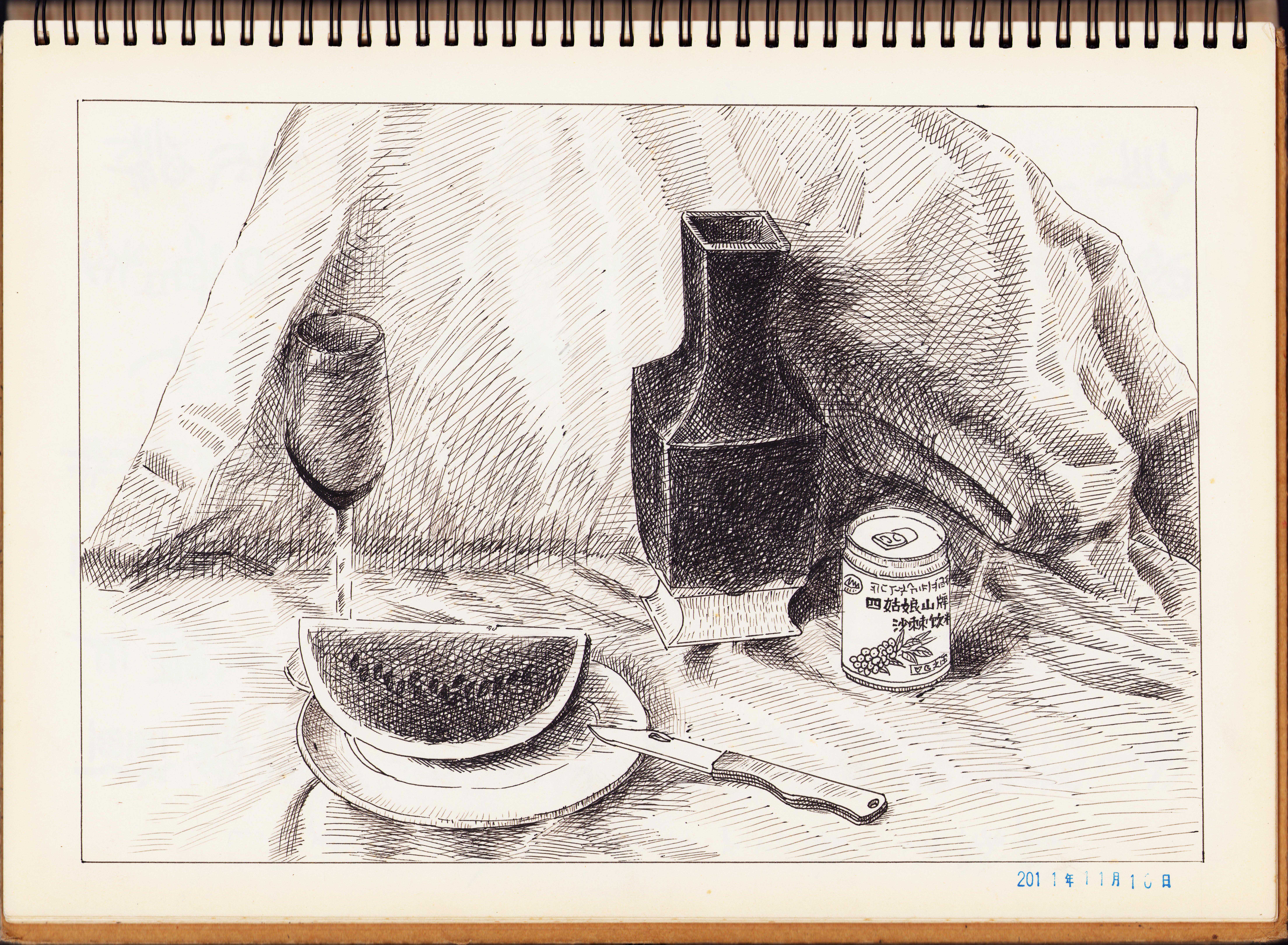 这里呈现的16幅钢笔画,是我画在一本素描本上的练习中挑选出来的,包括透视图、石膏几何体、写生花卉、动植物、工业产品、风景等内容,是课堂给学生作示范用的,大部分都在2013年前所画,教学年级从2010级到2013级。现在,纸张已发黄了,但是还能想起与同学们在课堂上一起度过的愉快时光。发在这里,也算是点滴的回顾与总结,请大家批评指正!