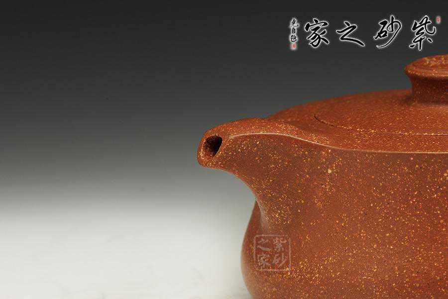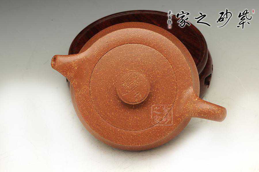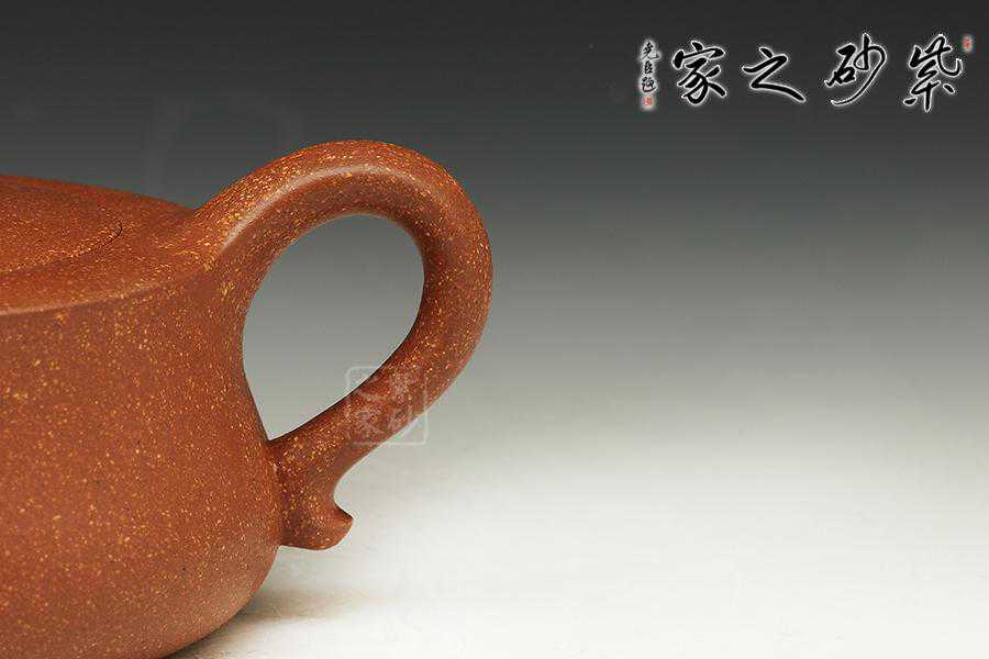:大肚壶身包容天地,耳把挺翘兼听八方,壶钮刻异体字"唯善呈祥,唯吾知足",匠心独具,铺砂降坡泥。