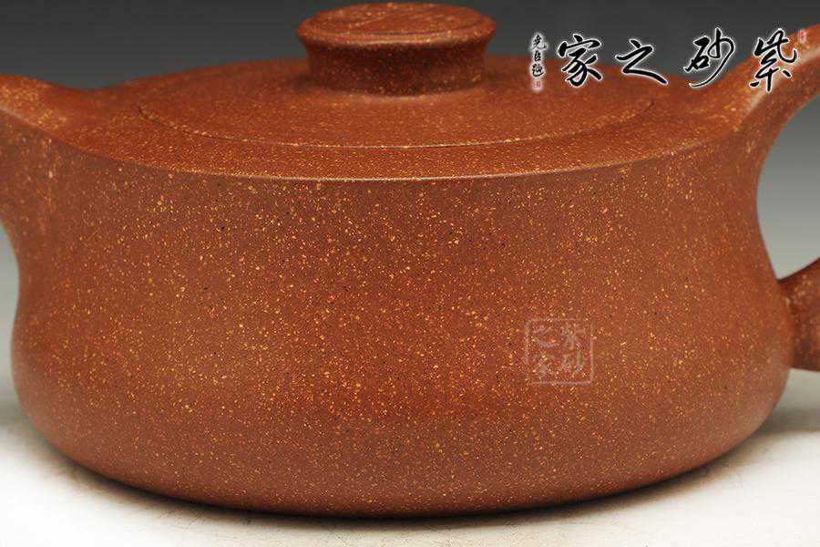 整个壶乍看像极了古时候的面缸,此壶圆筒形壶体,上宽下窄。流同壶身明接,盖平略见弧,珠形钮拿捏称手,壶盖子口制作圆滑,与壶口紧密结合,气密性好,此壶工艺讲究,隽永耐看!