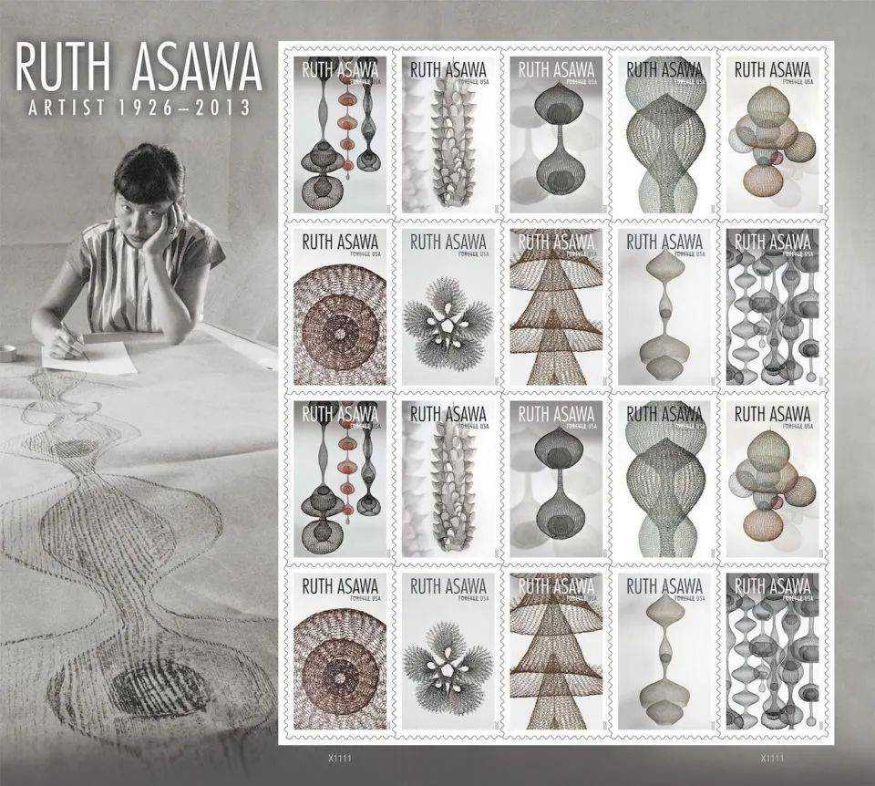 近日美国邮政局(USPS)宣布,将会为RuthAsawa推出一套纪念邮票,其中印上10件Asawa所创作的钢丝雕塑作品,由摄影师DanBradica和LaurenceCuneo操刀拍摄。这批作品目前被收藏于所罗门的古根海姆美术馆与美国的惠特尼美术馆之中,而邮票旁的肖像是来自1954年由NatFarbman为《Life》杂志拍摄的Asawa照片,相当具有纪念价值。