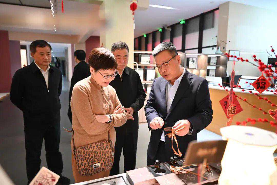 在文创商店,林郑月娥女士对琳琅满目的文创产品非常感兴趣,她十分赞同八大山人纪念馆“把博物馆带回家”的文创开发理念,并从这些承载着中华传统文化又融入现代美学的文化创意产品中感受到中国价值和中国精神。