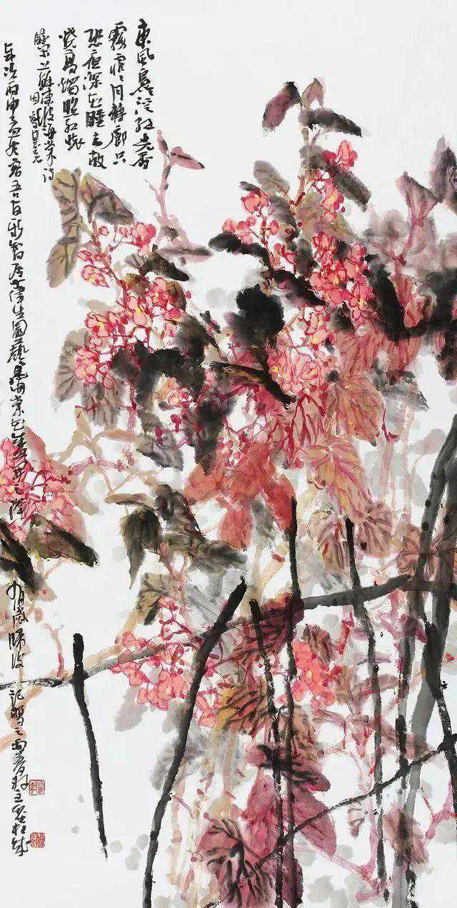 黎柱成的画具有浓烈的岭南特色,纵横均匀带来扑面而来的气息,尤其是他的传统程式和新题材的把握,处理的非常好,他的花鸟画的题材很多,包括海棠、牡丹、木棉都非常有特点。这些传统的题材又是非常难创新的题材,他用自己独特的表达方式呈现出来,是非常难得的。