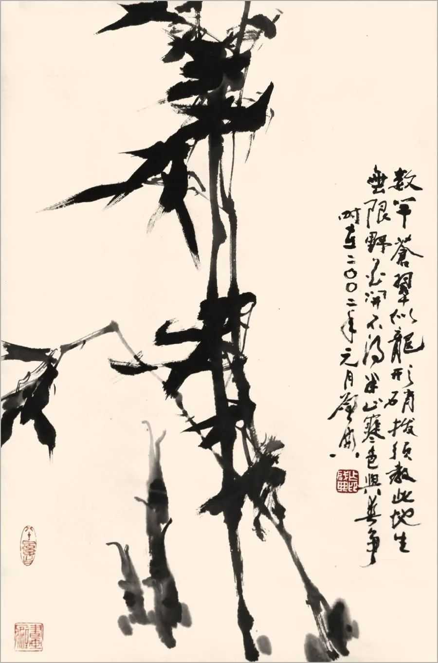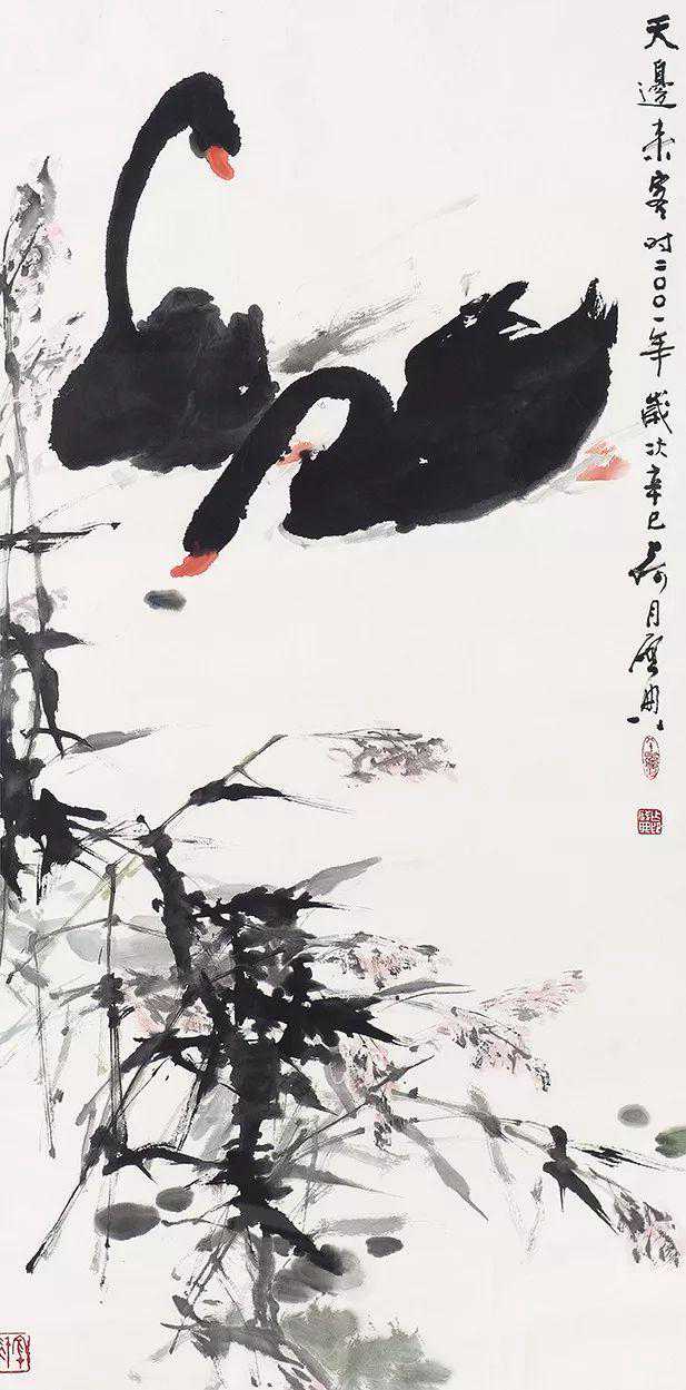 进入新世纪,他的艺术成就取得了更加丰硕的成果,2001年,在北京中国美术馆举办大型国画展,他的74幅精品画作连展一周。丈六作品《芭蕉》《蒲湖鱼鹰》《紫气东来》大气磅礴,酣畅淋漓;《雏鹰》《秋鹭》《鹈鹕》《非州鹳》《海棠八哥》活灵活现,惟妙惟肖;《旱莲》《芙蓉》《侣人树》《铁树含苞》水墨神化,滋润灵秀。