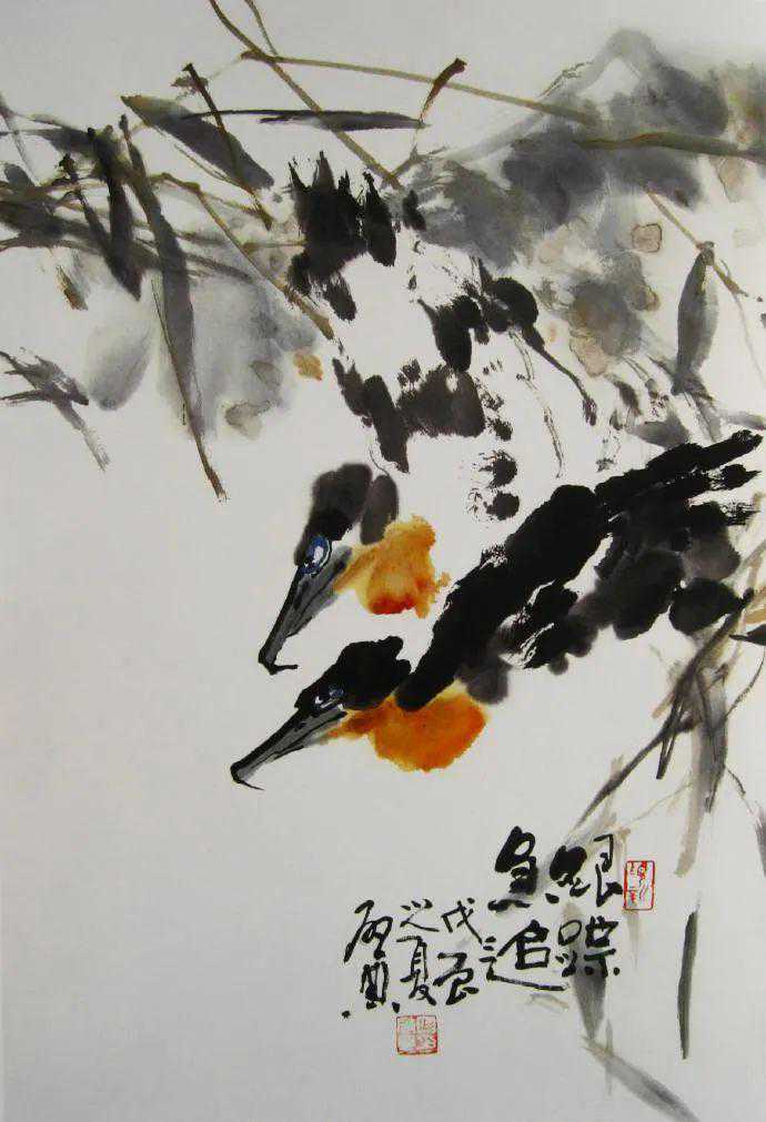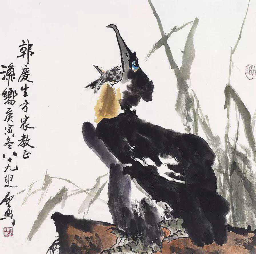 他的画作虚实相间,枯润相生,形神兼备,老辣朴拙,无论是花鸟,还是人物,抑或山水,都展示出一种气韵灵动、端庄郁勃、苍劲凝重的生命气息,更充分体现出他深邃厚重的文化艺术底蕴。