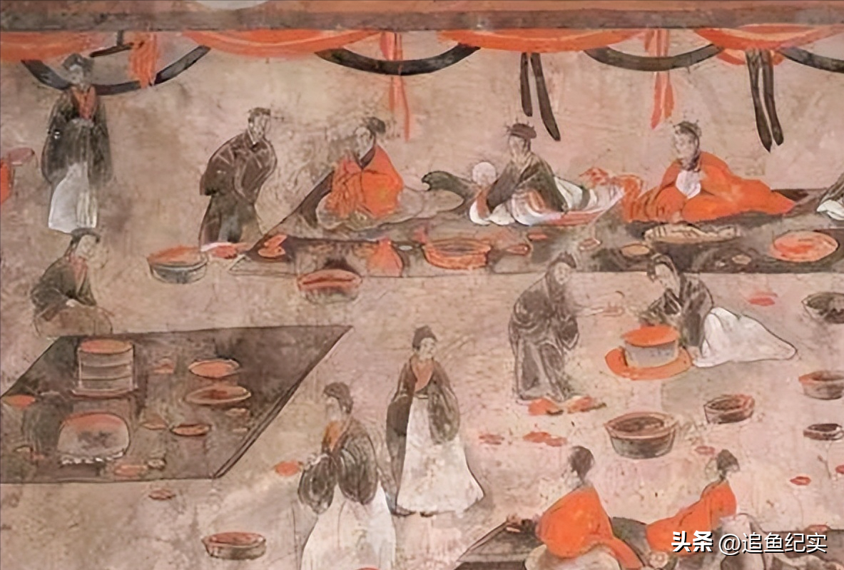 此时演出内容尚相对简单,多为音乐或简单的伎艺表演,设宴演出时,场内侍女有机会观看。