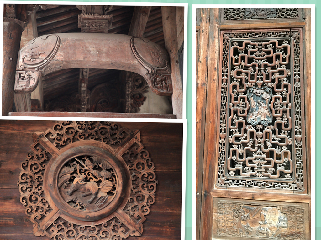 梁托、斗拱多运用圆雕、镂刻工艺,布局结构巧妙、层叠交错、繁而不乱。内容题材有神仙、故事传说、戏曲人物、狮子绣球、亭台楼阁和各种飞禽走兽、花鸟图案等。