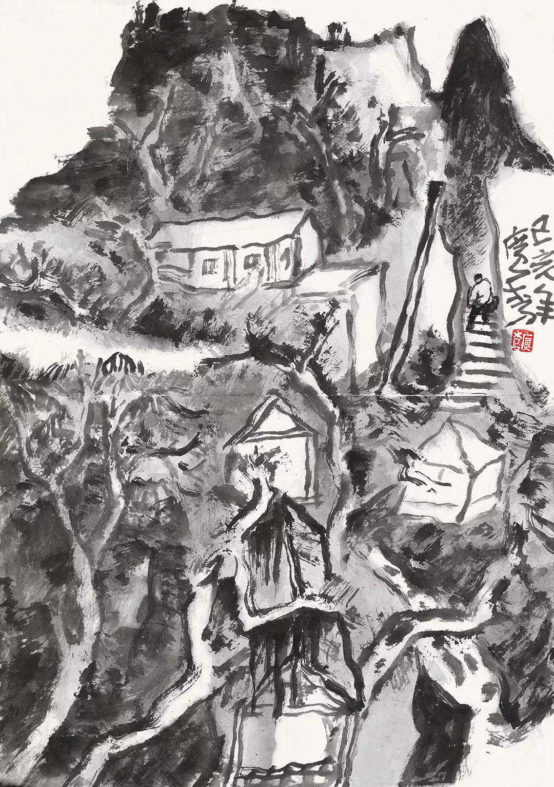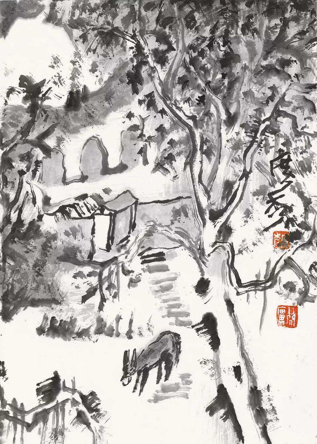 耕塬居美术馆34cm×49cm纸本水墨2018年
