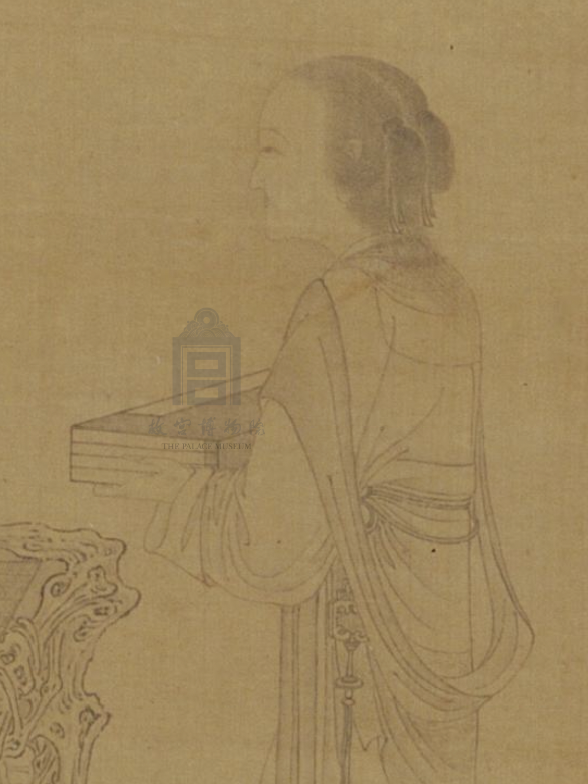 本幅虽然旧标为元人(1279-1368)的作品,但从仕女形象,及衣纹线条的特质来推断,应当是明代中期以后,受到杜菫(活动于1465-1509间)、唐寅(1470-1523)等人所影响的画家所作。
