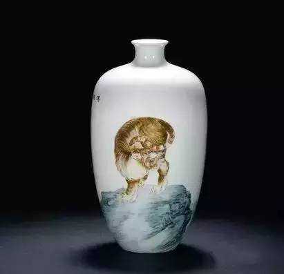 (徐仲南粉彩《虎视眈眈》小赏瓶)