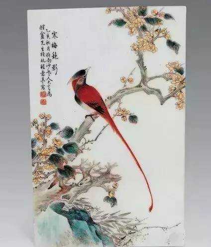 (刘雨岑粉彩《双宿双飞》瓷板画)