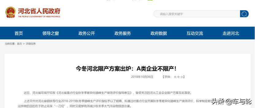 据了解,2018年末,河北省环保厅印发《河北省重点行业秋冬季差异化错峰生产绩效评价指导意见》,其中,A类企业不予错峰生产、B类企业错峰20%左右、C类企业错峰生产50%左右。