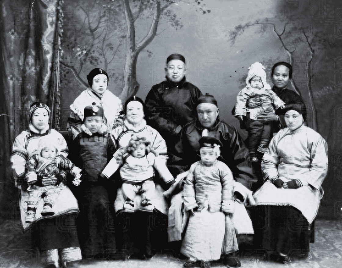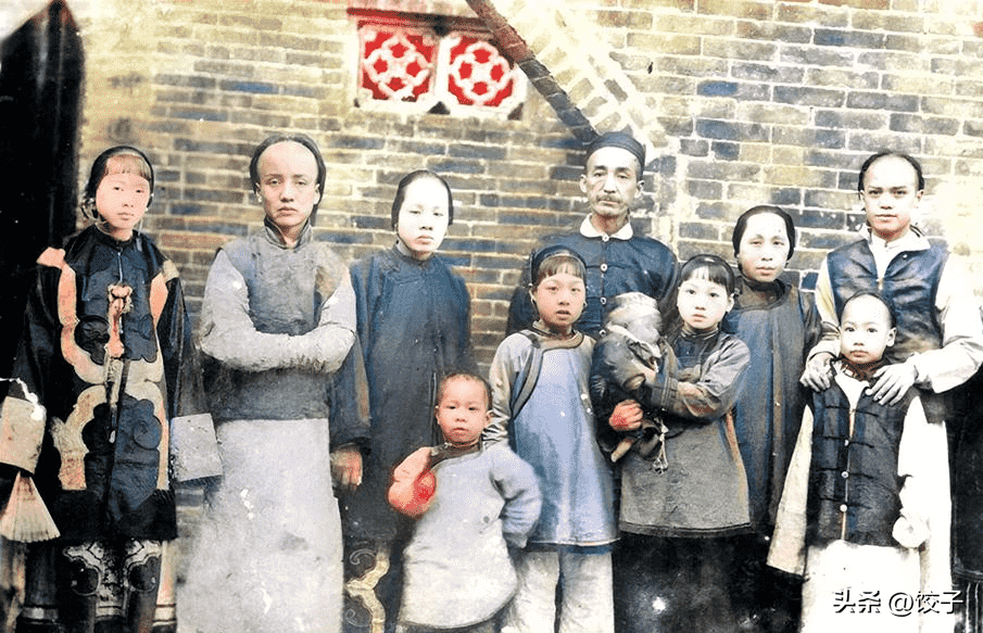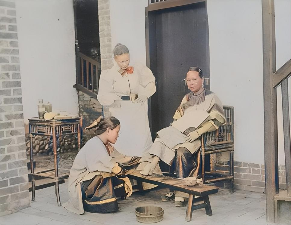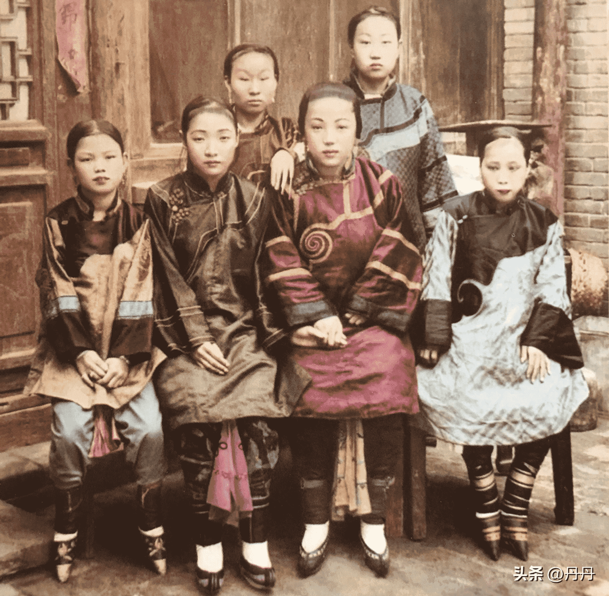 六名女子就是一户有钱人家的妻妾,比较有意思的是中间的两名女子并没有裹着小脚,或许是这个原因所以她们两个的关系比较好